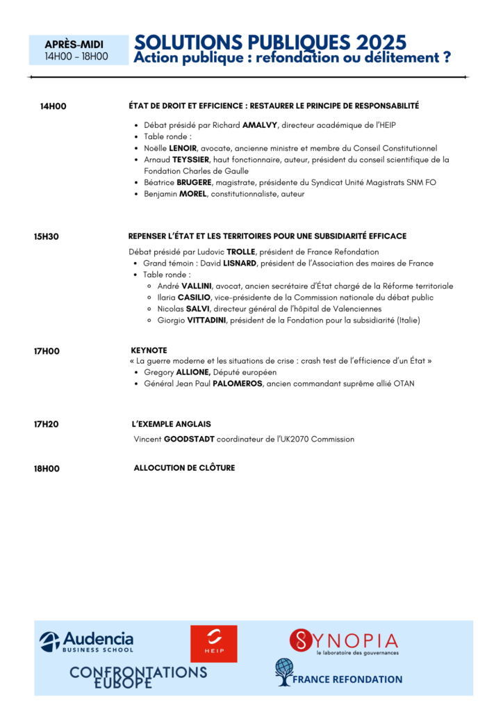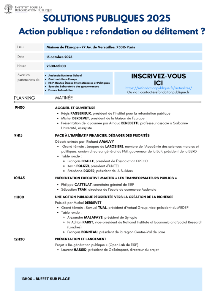 Synopia est partenaire le 15 octobre 2025 de la rencontre « Solutions Publiques 2025 », organisée par l’Institut pour la Refondation Publique, à la Maison de l’Europe à Paris.