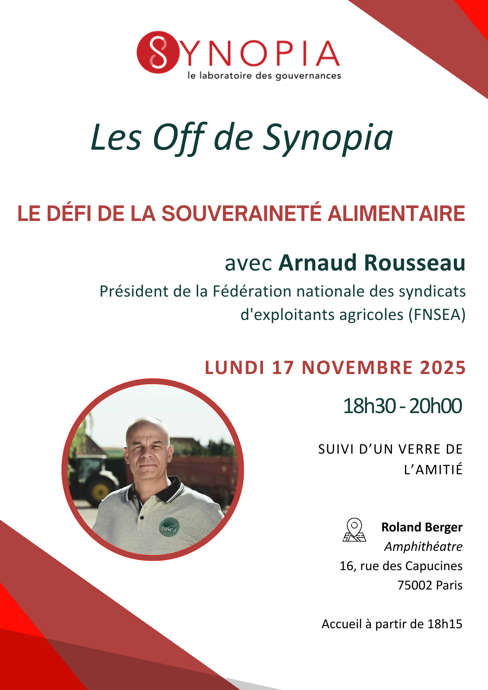17h00 – 18h00 : le mot de la fin par Alexandre Malafaye, Président de Synopia et Sophie Cavillon, Doyenne de la Faculté Gestion Économie et Sciences (FGES) – Université Catholique de Lille.